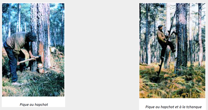 Le gemmage traditionnel au haptchot et autres outils analogues (bridon, rasclet, rapetout).